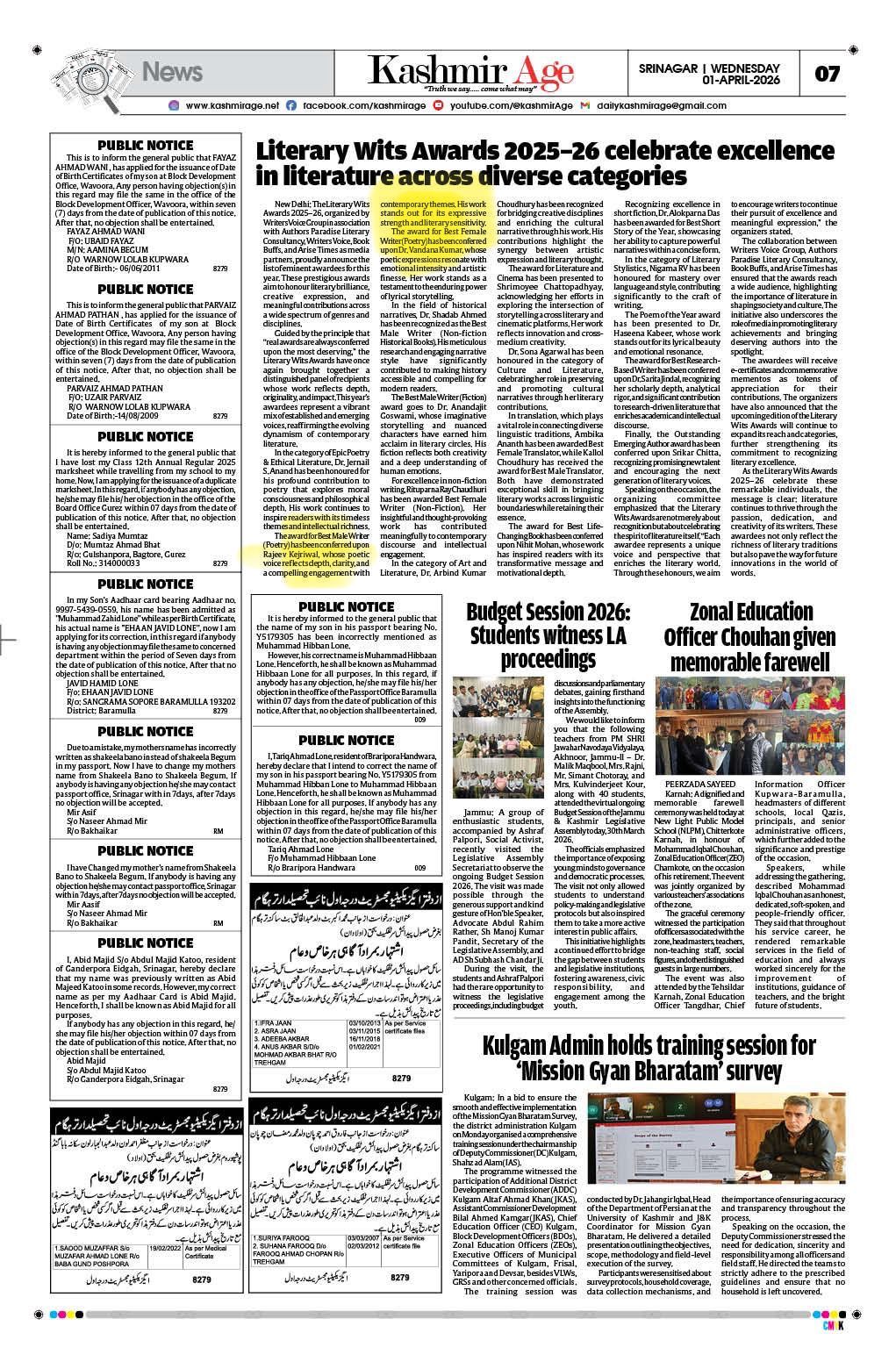 Featured in Hindustan Times , supplementary