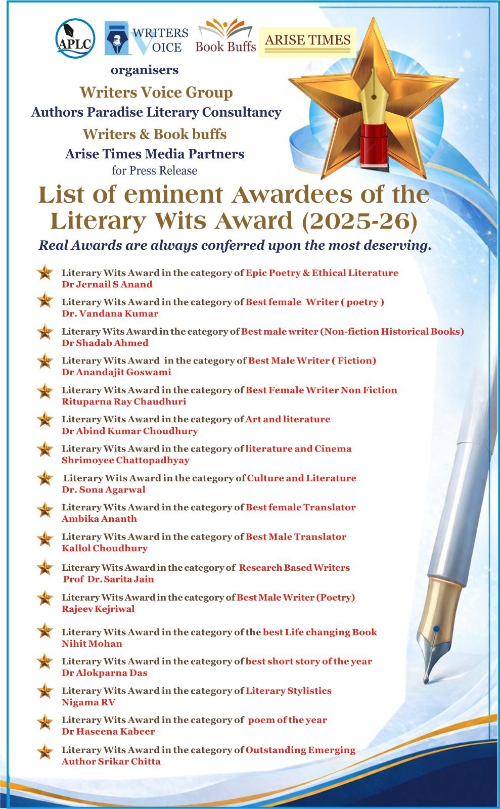 Awarded Best Male Writer (Poetry)